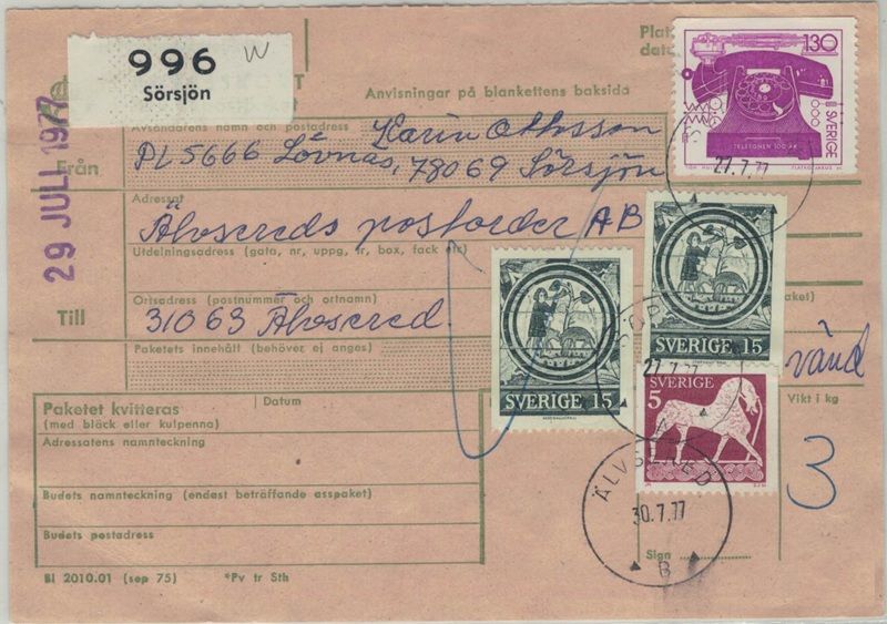 Sörsjön NSt 60 A på paketavi 27.7.77 (Häftesblock baksidan) |