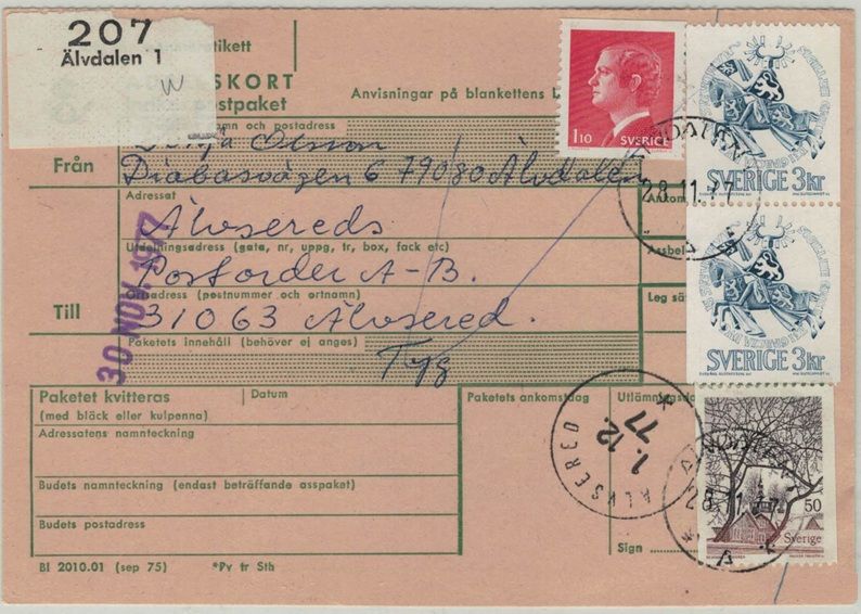 Älvdalen 1 NSt 61cA på paketavi 28.11.77 |