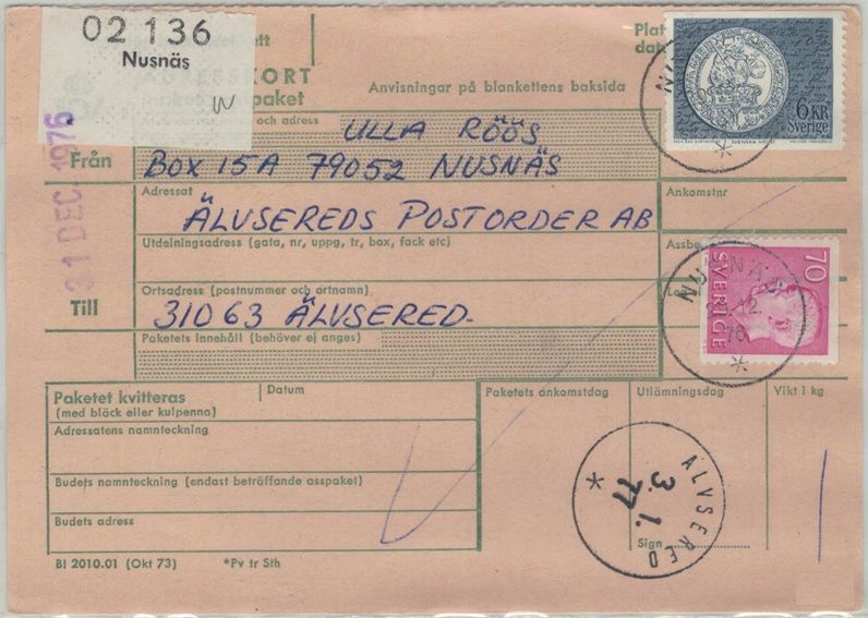 Nusnäs NSt 59b på paketavi 29.12.76 (skottdagen!) |