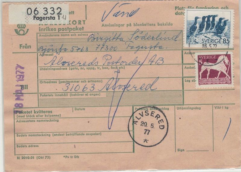 Fagersta 1 NSt 60 E på paketavi 16.5.77 (Häftesblock baksidan) |
