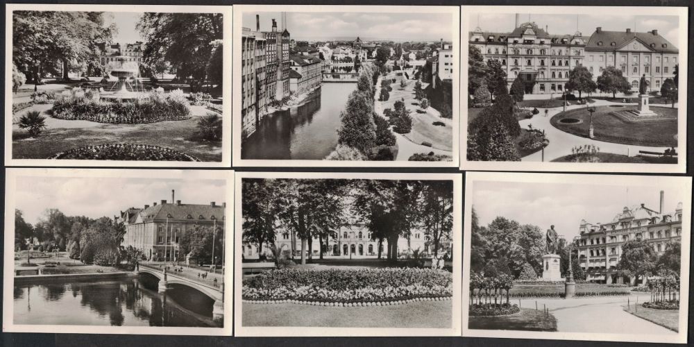 12 st små kort (c:a 90 x 65 mm) över Norrköping; ej vykort |