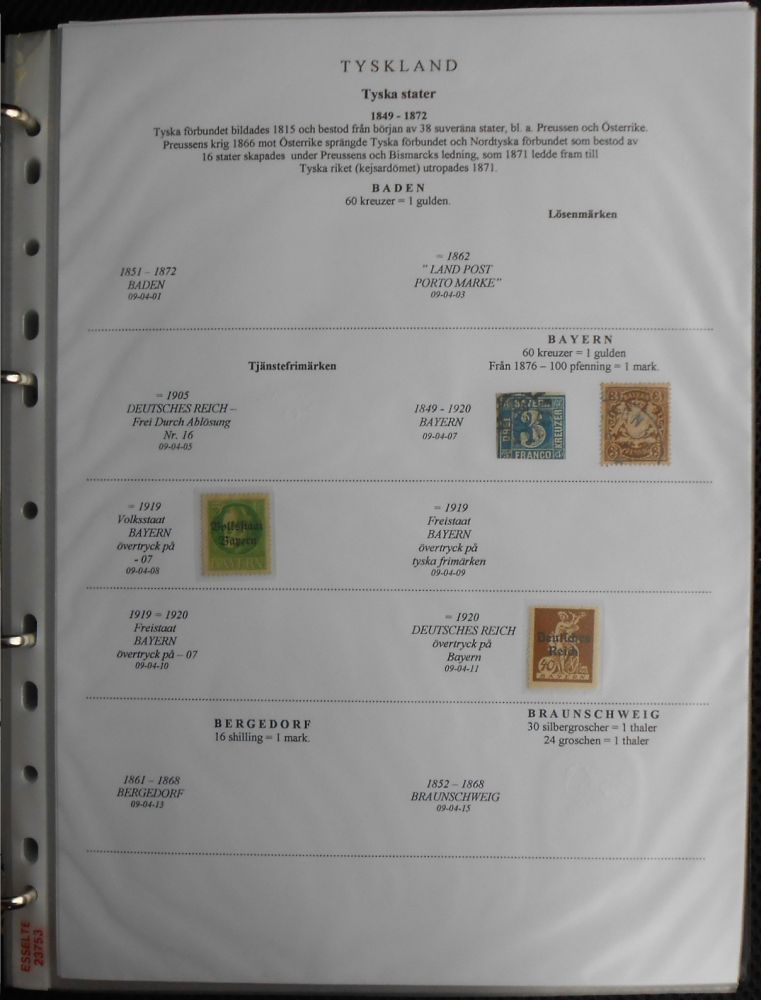 Svart pärm med 69 sidor frimärken samt data om deras länder |