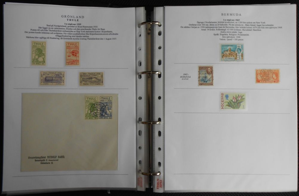 Svart pärm med 71 sidor frimärken samt data om deras länder |