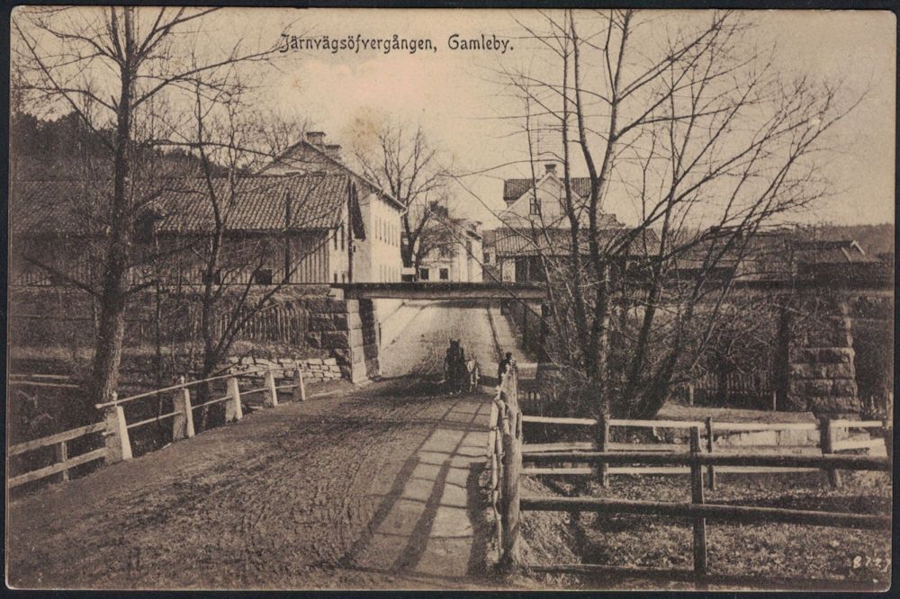 Skrivet & ofrankerat vykort: Järnvägsöfvergången, Gamleby. |