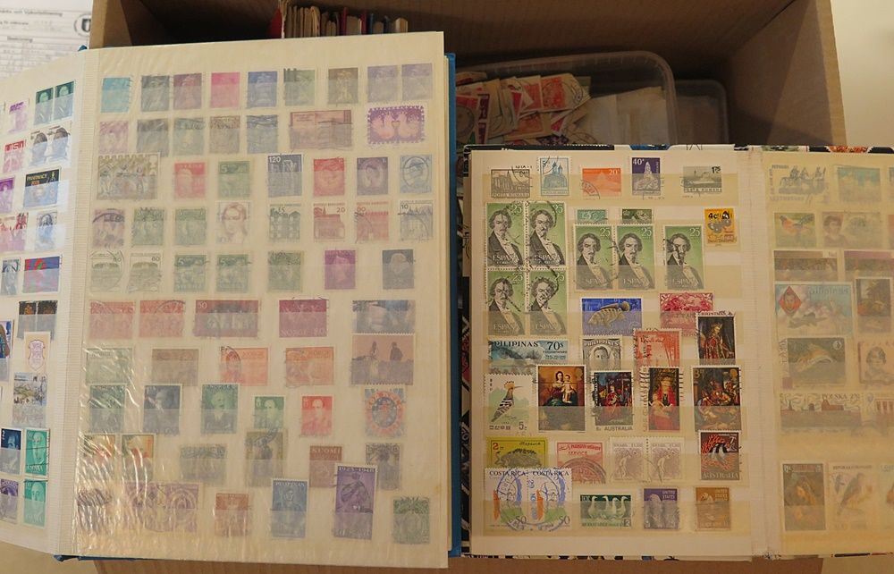 Fyndlåda med många insticksalb, pergamynkuvert,mm |