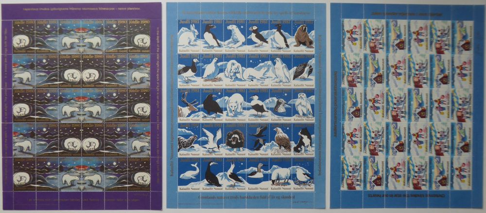 Grönland diverse, årsats 1979, försegl. Katv 75 kr. Tio ark brevm. Jul. 1980-84, 2 st 85, 87-89. Extramatr.
