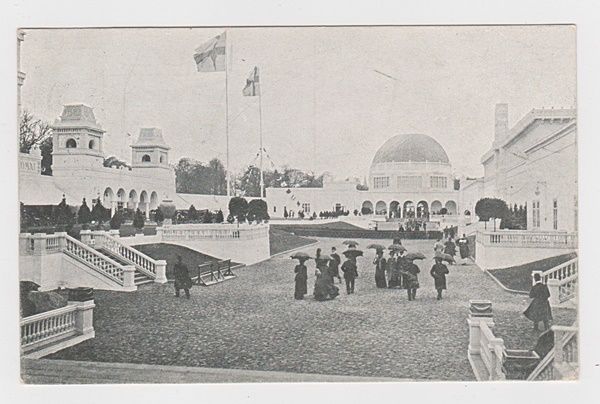 Vykort Konstuställning i Stockholm 1909 stpl-Oscar 5 öre Kv.8
