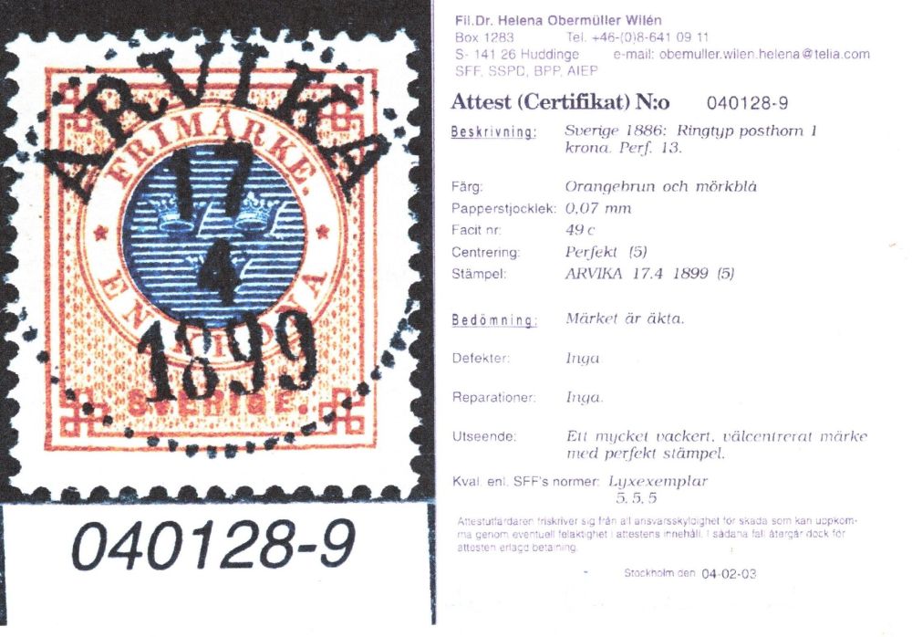 49c Arvika. Intyg HOW 5,5,5. Ringtyp med posthorn. 1 krona i LYX. S-län |