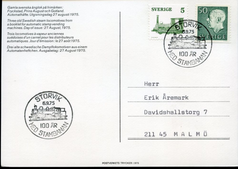 STORVIK 5.9.1975. 100 år stambanan.Ånglok SJ Litt 1393 från Motala Verkstad. |