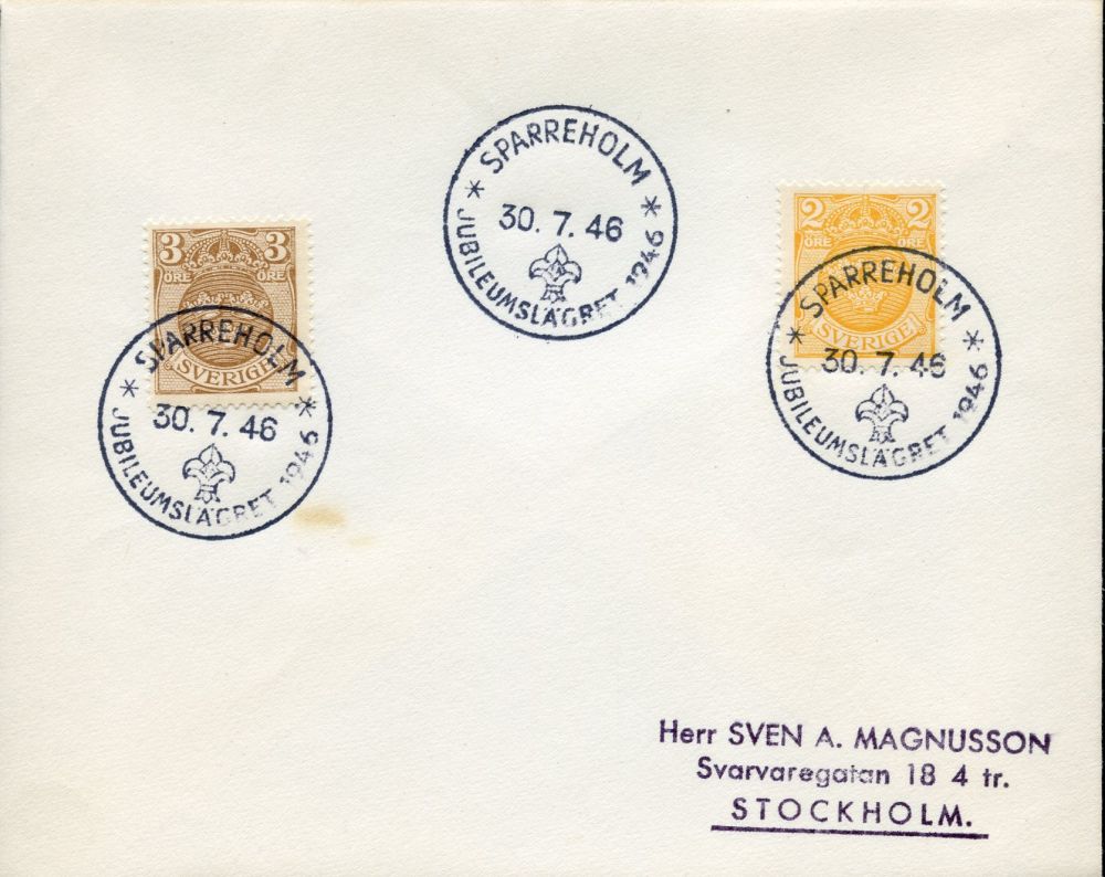 SPARREHOLM 30.7.1946. Jubileumslägret. Frälsningsarmens scoutemblem |