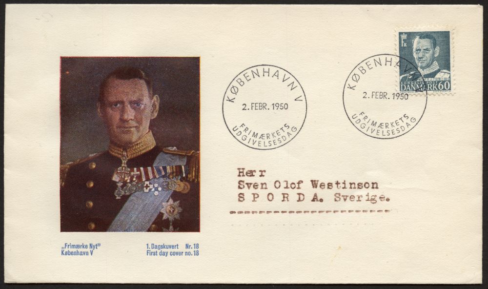 Danmark 1950 - Kung Fredrik IX, FDC |