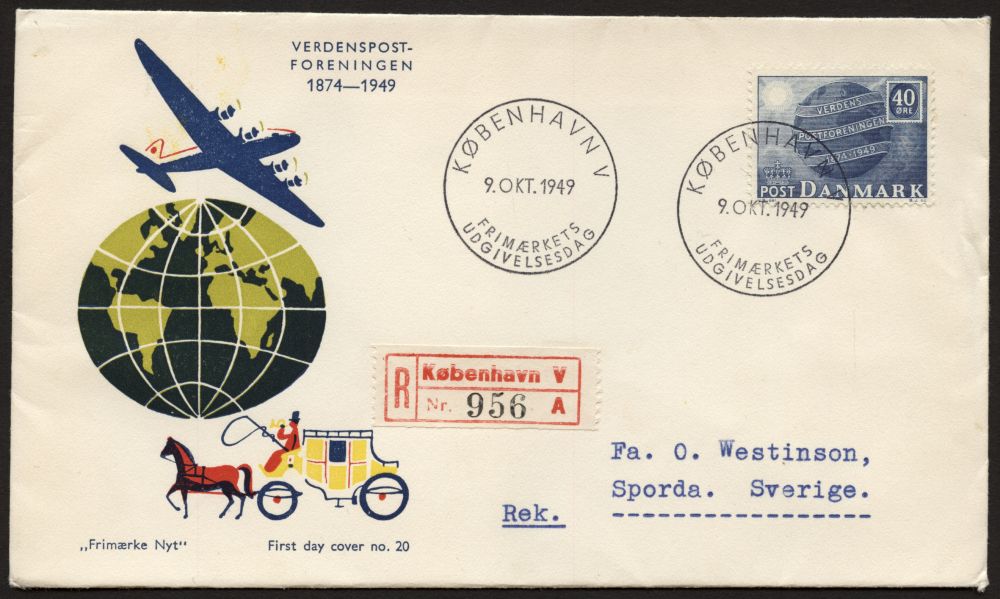 Danmark 1949 - 75 år av Världspostunionen (UPU), FDC |