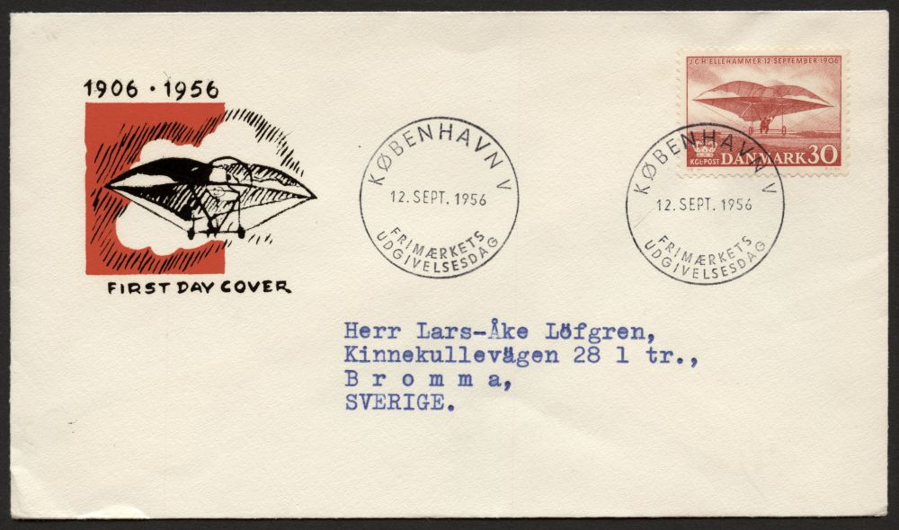 Danmark 1956 – 50-årsdagen av Jacob Christian Ellehammers första flygförsök, FDC |