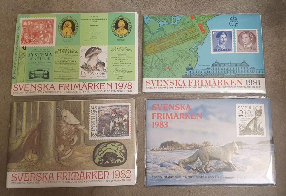 8 st förseglade årssatser 1978-1986. Frankeringsvärde över 1.000 kr