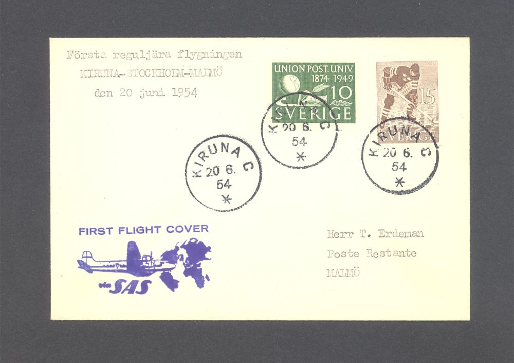 SAS 1:a reguljära flygningen Kiruna -Stockholm-Malmö |