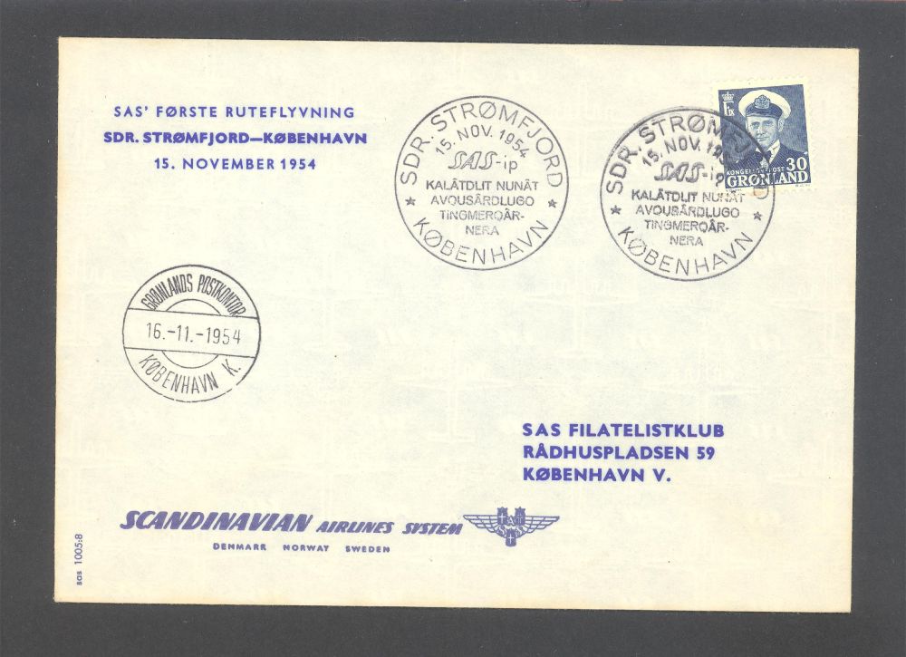 SAS 1:a reguljära flygningen SDR Strömsfjord(Grönland)-Köpenhamn |