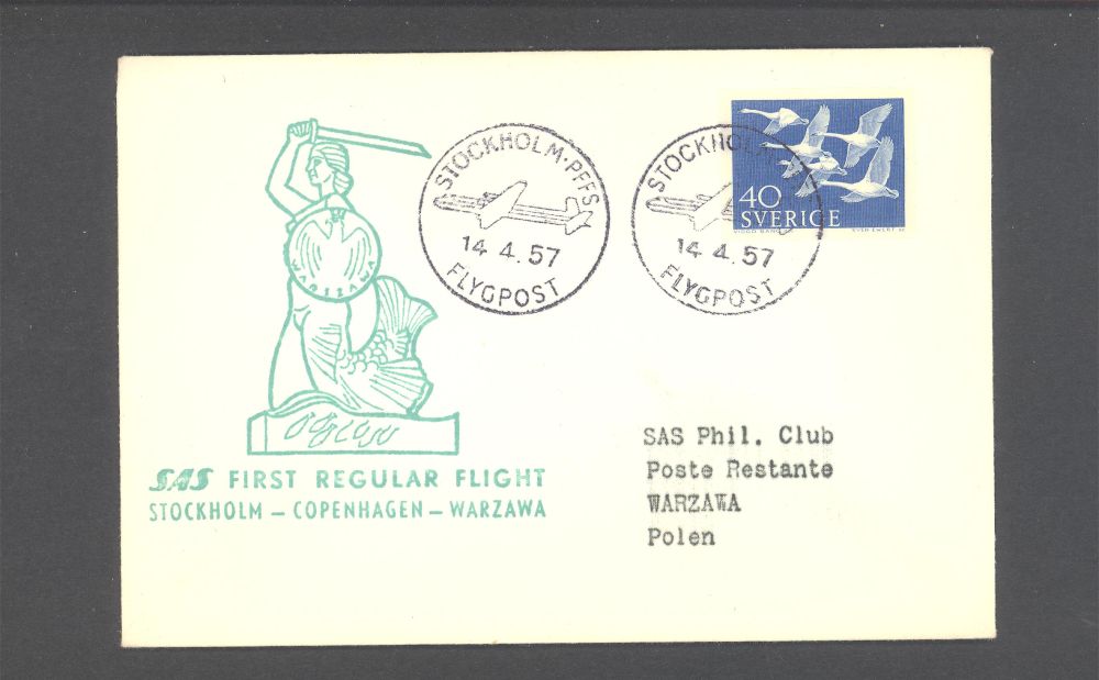 SAS 1:a Reg. Polar Flighten Stockholm-Köpenhamn-Warzawa |