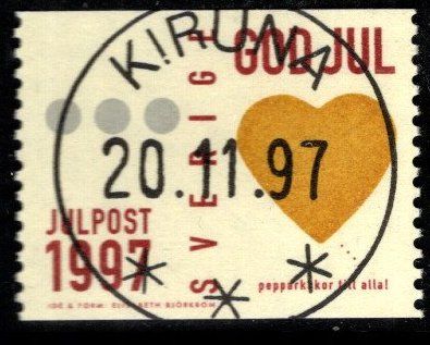 2044 Kiruna. Julfrimärke från 1997 i LYX. BD-län |