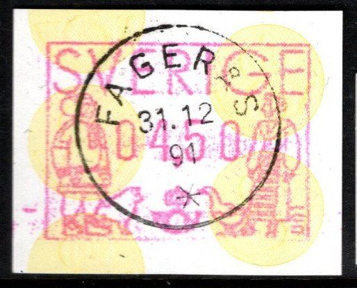 Frankeringsetikett EA 1g. Fagerås. 4.50 kr i LYX. S-län |