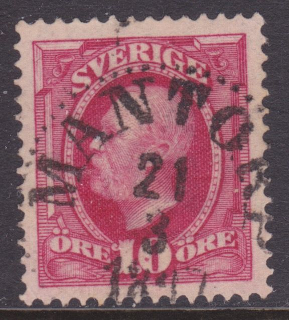 F54 10 öre Oscar II, LMantorp 21.3 1897 vacker-prakt |
