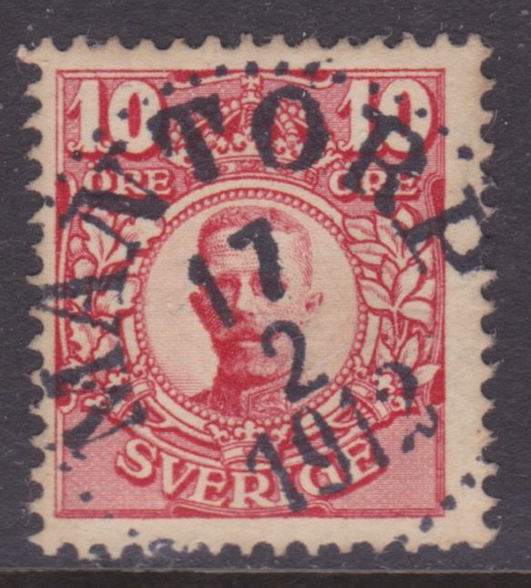 F82 10 öre 'Gustaf V, Mantorp 17.2 1912 prakt |