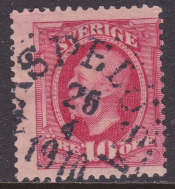 F54 10 öre Oscar II, Maspelösa 25.4 1910 |