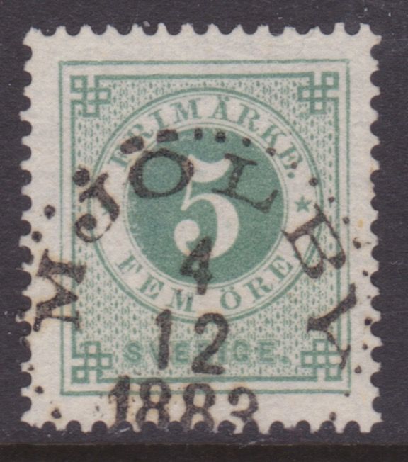 F30 5 öre T13, Mjölby 4.12 1883 |