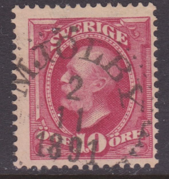 F54 10 öre Oscar II, Mjölby 2.11 1891 vacker-prakt |