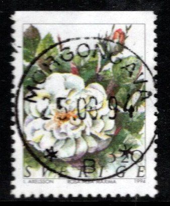 1843Bu Morgongåva. Rosor på frimärken - Rosa alba. Tresida i LYX. C-län |
