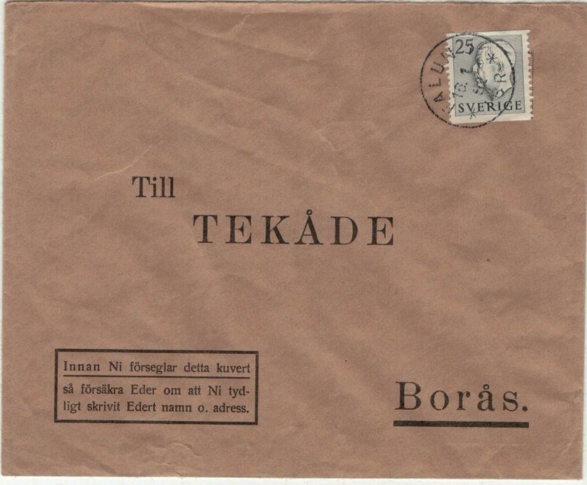 | Stämplar: Dalarna | Brev o dokument: Försändelser 1938-1970 |