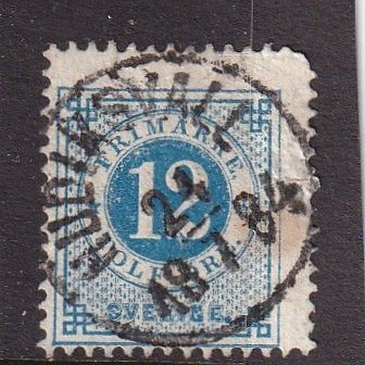 Hudiksvall 23/7 1884 12 öre Ringtyp t 13. def. hörntand |