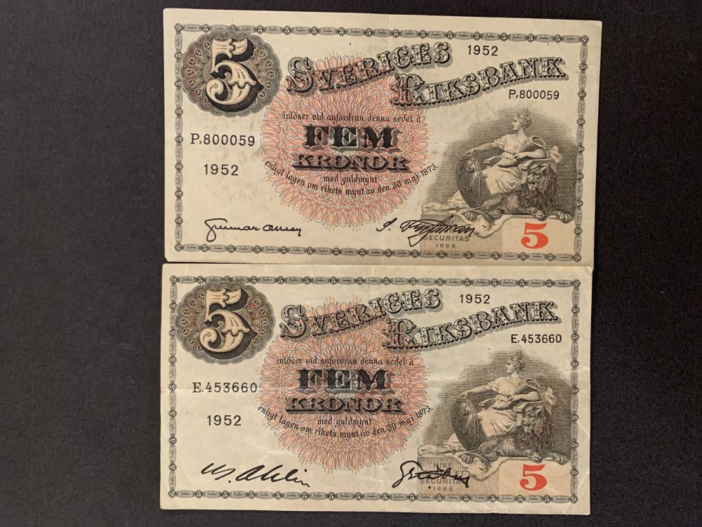 Sverige 5kr 1952 - TVÅ OLIKA |