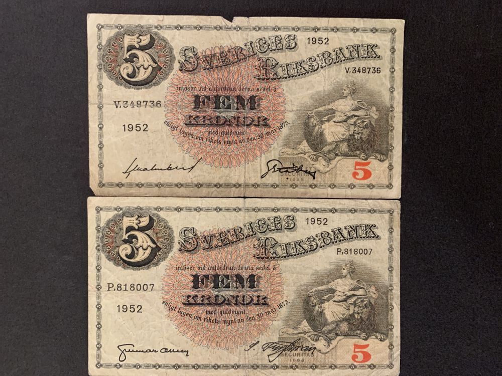 Sverige 5kr 1952 - TVÅ OLIKA |