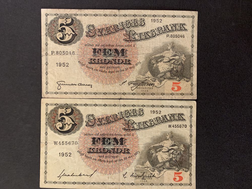 Sverige 5kr 1952 - TVÅ OLIKA |
