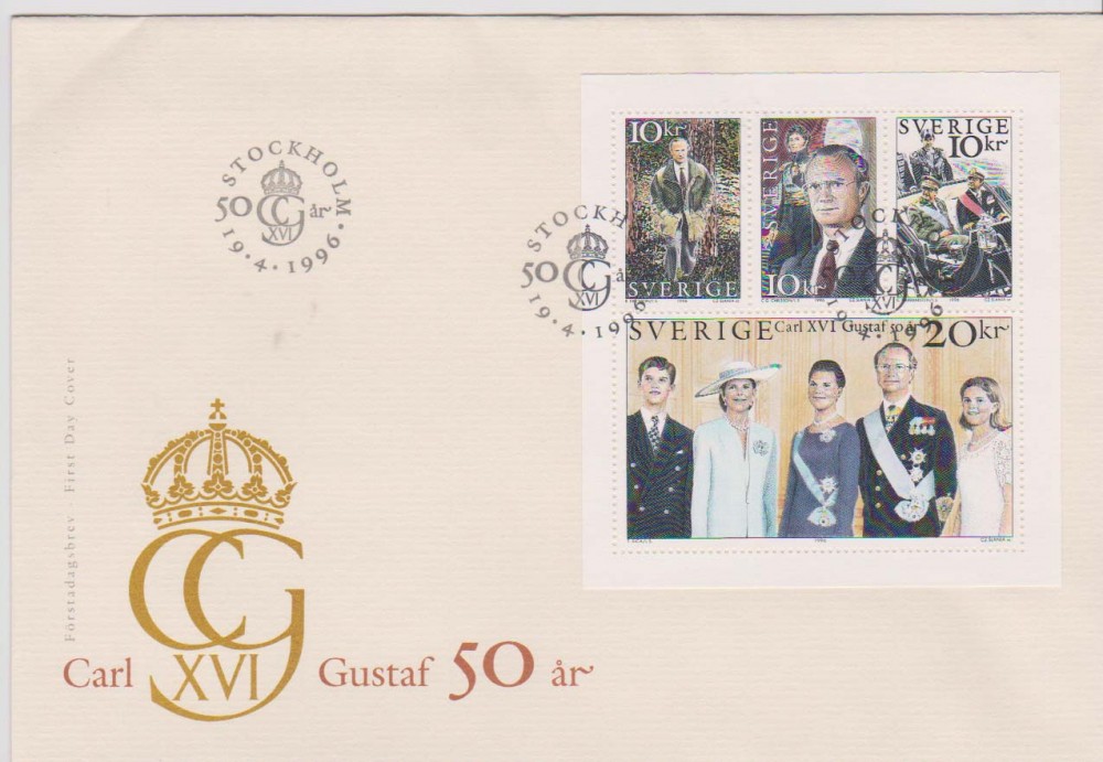 FDC 1996-04-19 F 1956 - 1959 Carl XVI Gustaf 50 år |