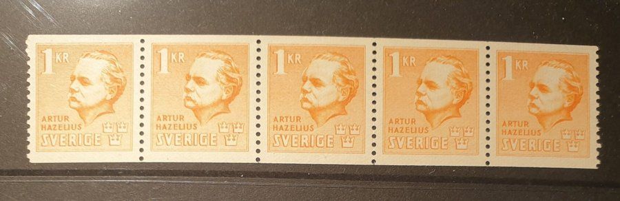 334 Hazelius 1 kr Postfriskt 5-strip |