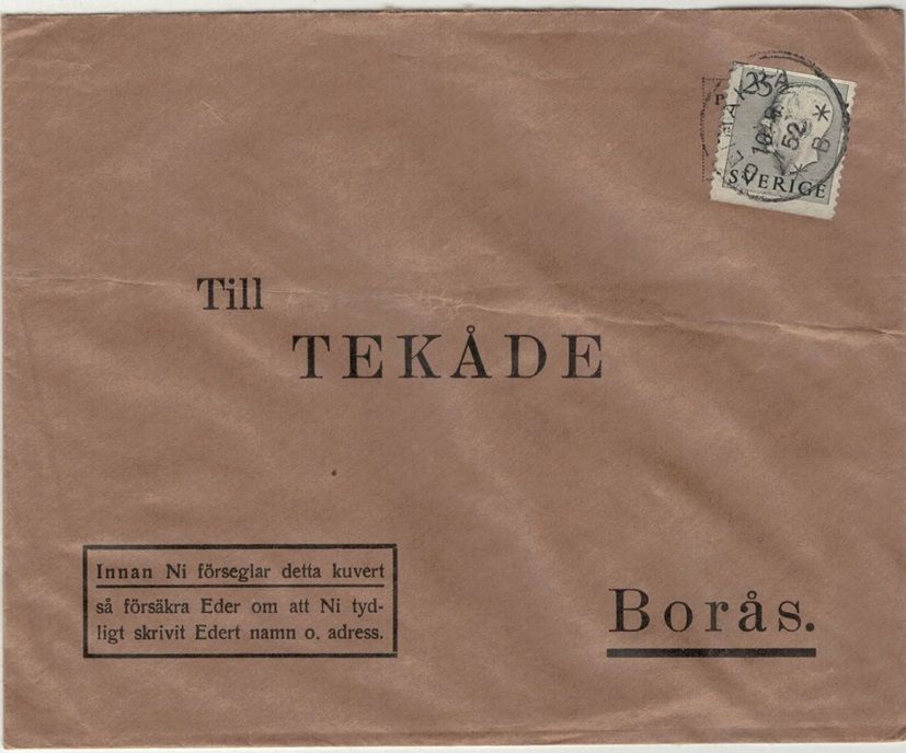 | Brev o dokument: Försändelser 1938-1970 | Stämplar: Skåne |