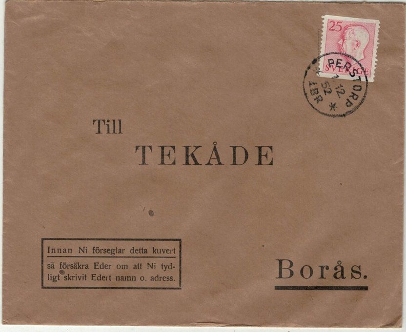 Perstorp NSt 59cLBR på brev 1.12.52 |
