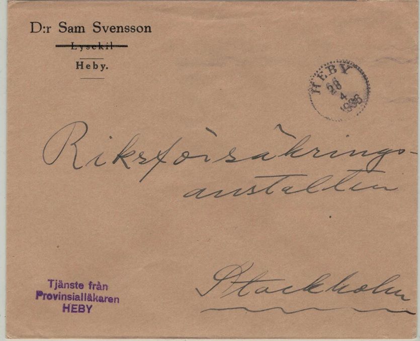 Heby NSt 14 på tjänste-brev (Provinsialläkaren) 28.4.1936 |