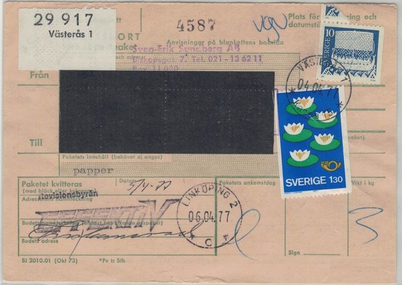 Västerås 1 NSt 61ckassa15 på paketavi 04.04.77 SVÅR |