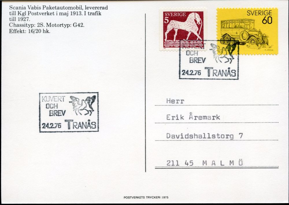 TRANÅS 24.2.1976. Kuvert och brev. |