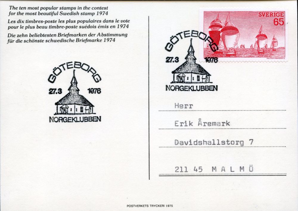 GÖTEBORG 27.3.1976. Norgeklubben.Frimärksutställning. Norska Sjömanskyrkan. |