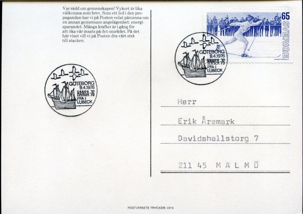 GÖTEBORG 9.4.1976. Hansa 76. PFA i Lübeck. Hansakogg och flygande svanar. |