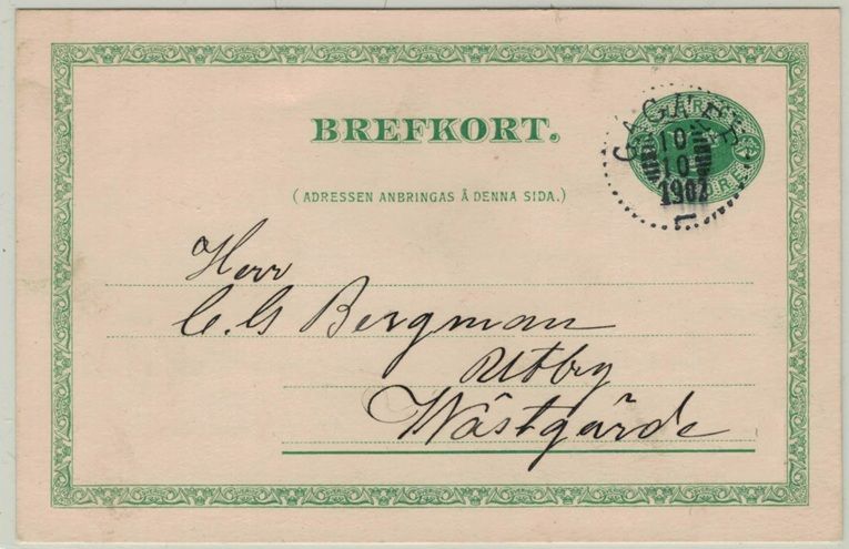 Gagnef NSt 34 på brevkort 10.10.1902 |