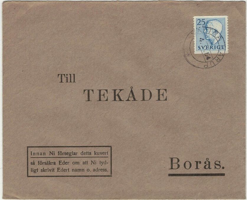 Västra Karup NSt 58t på brev 4.11.54 |