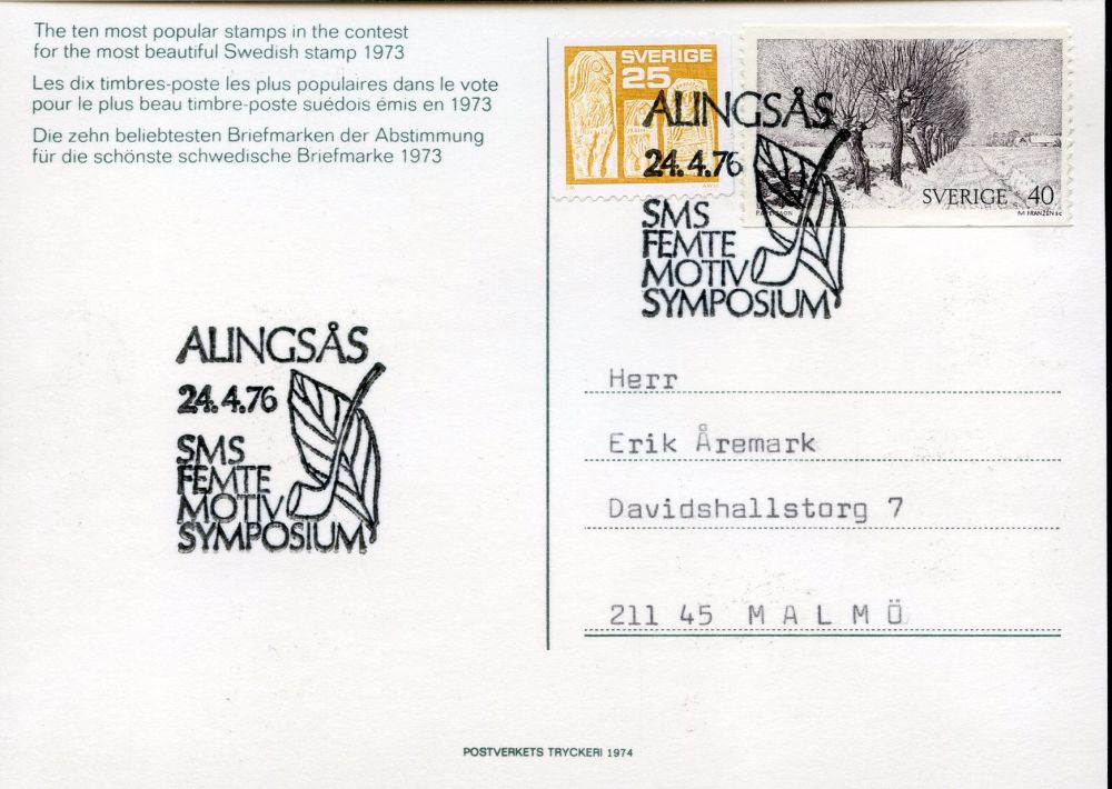 ALINGSÅS 24.4.1976. SMS femte motivsymposium. Tobaksblad och kritpipa |