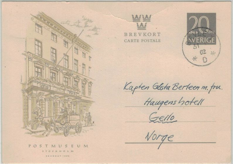 Gävle 1 NSt 59cD på brevkort 31.1.62 |