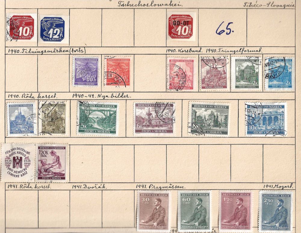 Tysk post iTjeckoslovakien, 2 blad stämplade och *(*) |