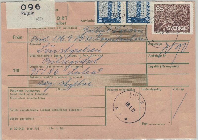 | Stämplar: Norrbotten | Brev o dokument: Försändelser 1971- |