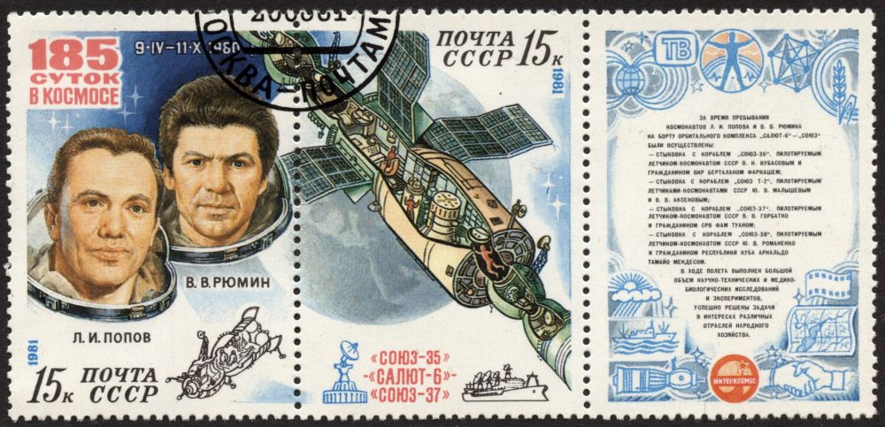 Sovjetunionen 1981 - Soyuz 35 - Salyut 6 - Soyuz 37 orbitalkomplex: 185 dagar i rymden |